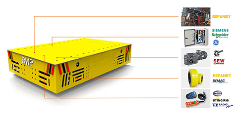 BWP:電動無軌膠輪車是一種以蓄電池作為電源,電機減速機作為驅動系統(tǒng),實心包膠車輪直接在地面行走的轉運車,其運行不受阻礙,進口的車輪保證地面不受損壞,360°原地轉彎適應更狹小的空間運行,360度防護、遇人自動停止等功能,保證了運行過程中的問題。觸摸屏、搖桿操作等設計使操作更加人性化。